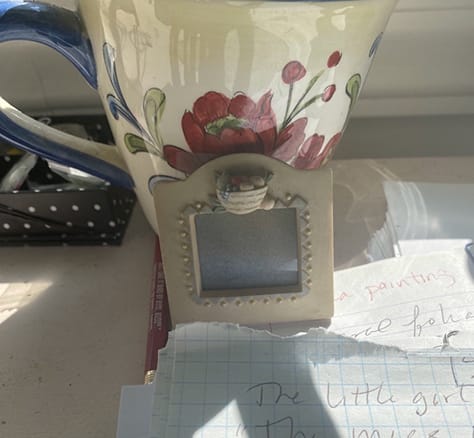 But even now, when she sits down and the panic sets in - the essay too sprawling, the blank page too blank - she picks up that tiny frame. She holds it up to the world and looks through it.