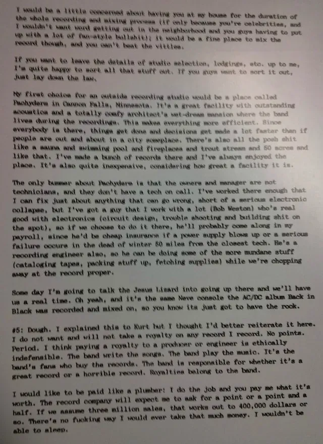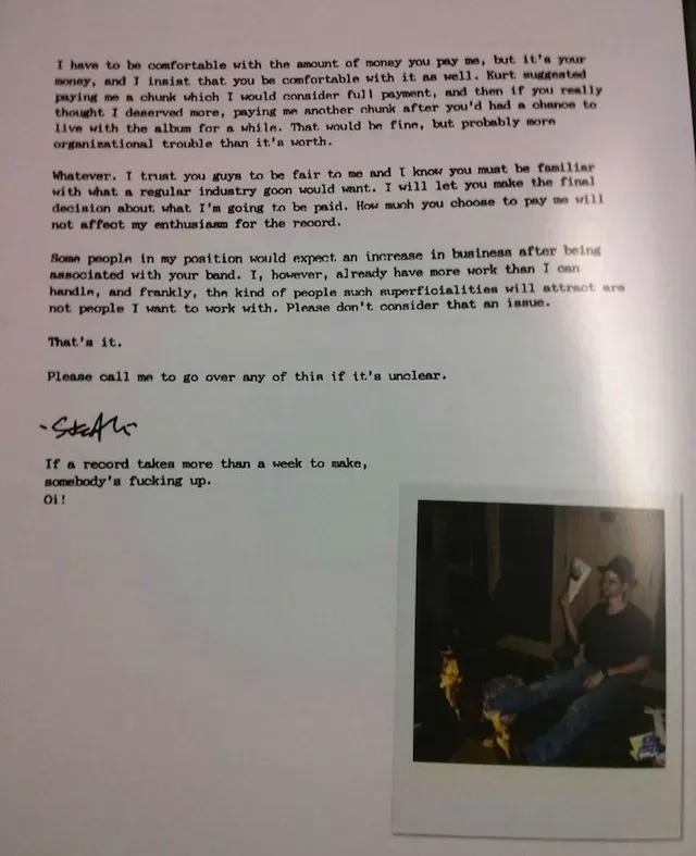 Steve Albini's letter to Nirvana (No business lessons required)