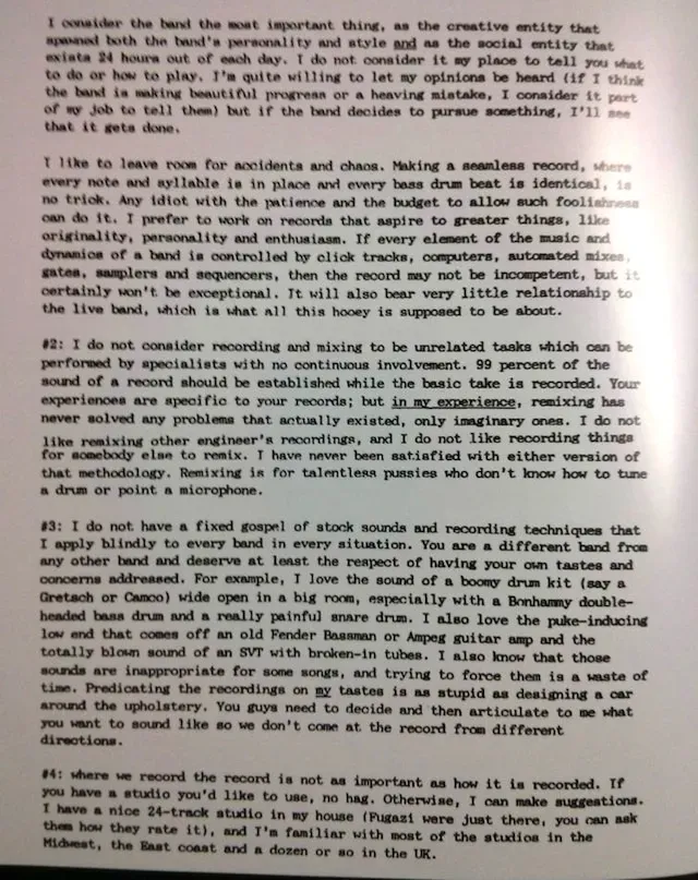 I try to avoid just grabbing other people’s stuff to share here, but it’s a truly wonderful letter. Albini wasn't just an incredible musician and producer - he was also a tremendous writer.